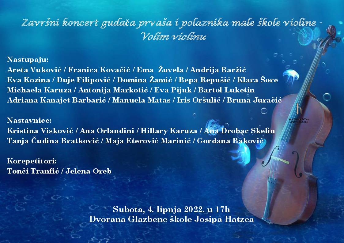 Završni koncert gudača prvaša i polaznika male škole violine – Volim violinu